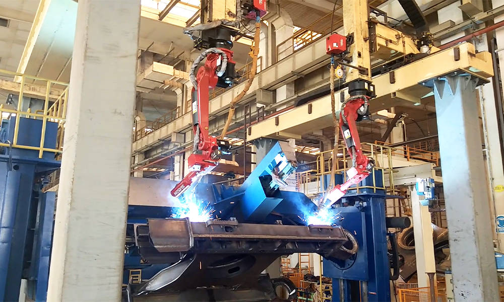 新松先后为国内工程机械行业的多个龙头企业提供智能焊接机器人系统,实现装载机前后车架、动臂、摇臂、驾驶室、发动机罩及挖掘机主架、下架总成、动臂、斗杆、马达座、挖斗铲背、驾驶室等结构件的自动焊接。