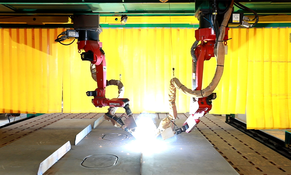 对船舶行业组立件原有流程链中的关键部件生产进行自动化和智能化升级。通过机器人搭载智能化视觉,配套对应工艺的专家库系统、可与CAD图纸连接的上位机系统,使客户的生产效率得到大幅提升,产品质量得到有效保障。