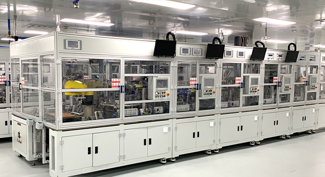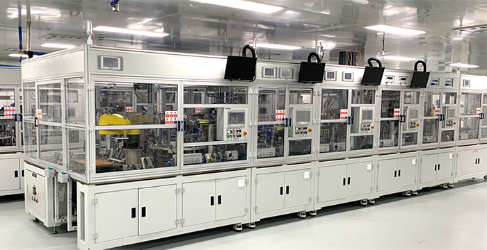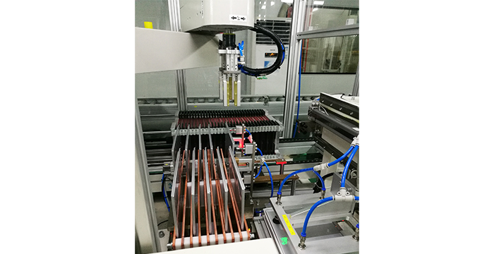 其二、锂电化成分容生产测试系统,覆盖锂离子电芯测试工序的全部工艺过程,实现注液电芯接收到电芯成品下线整个过程的全自动化生产。在仓储物流系统的管理调度、安全、专机效率和系统柔性等多方面进行了优化。自研的拘束工装,对产品外观实现了良好的保护,满足了生产工艺的需求。并获取了《一种兼容型软包电池加电测试装置》和《一种软包锂电池化成分容治具》两项发明专利;