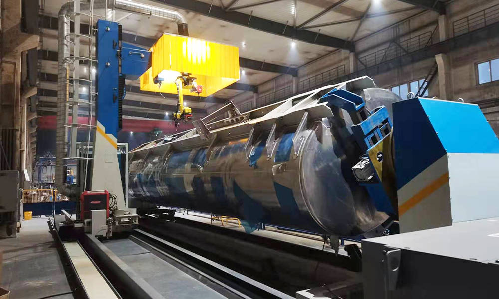 LNG罐箱智能产线,综合运用绿色制造工艺和智能制造技术,建成投产的全球首条LNG罐箱智能生产线。该产线对标制造业数字化、网络化、智能化发展要求,破解了LNG罐箱行业的离散制造难题,填补了国内LNG压力容器装备产业智能制造空白,强力助推国家“十四五”智能制造进程。